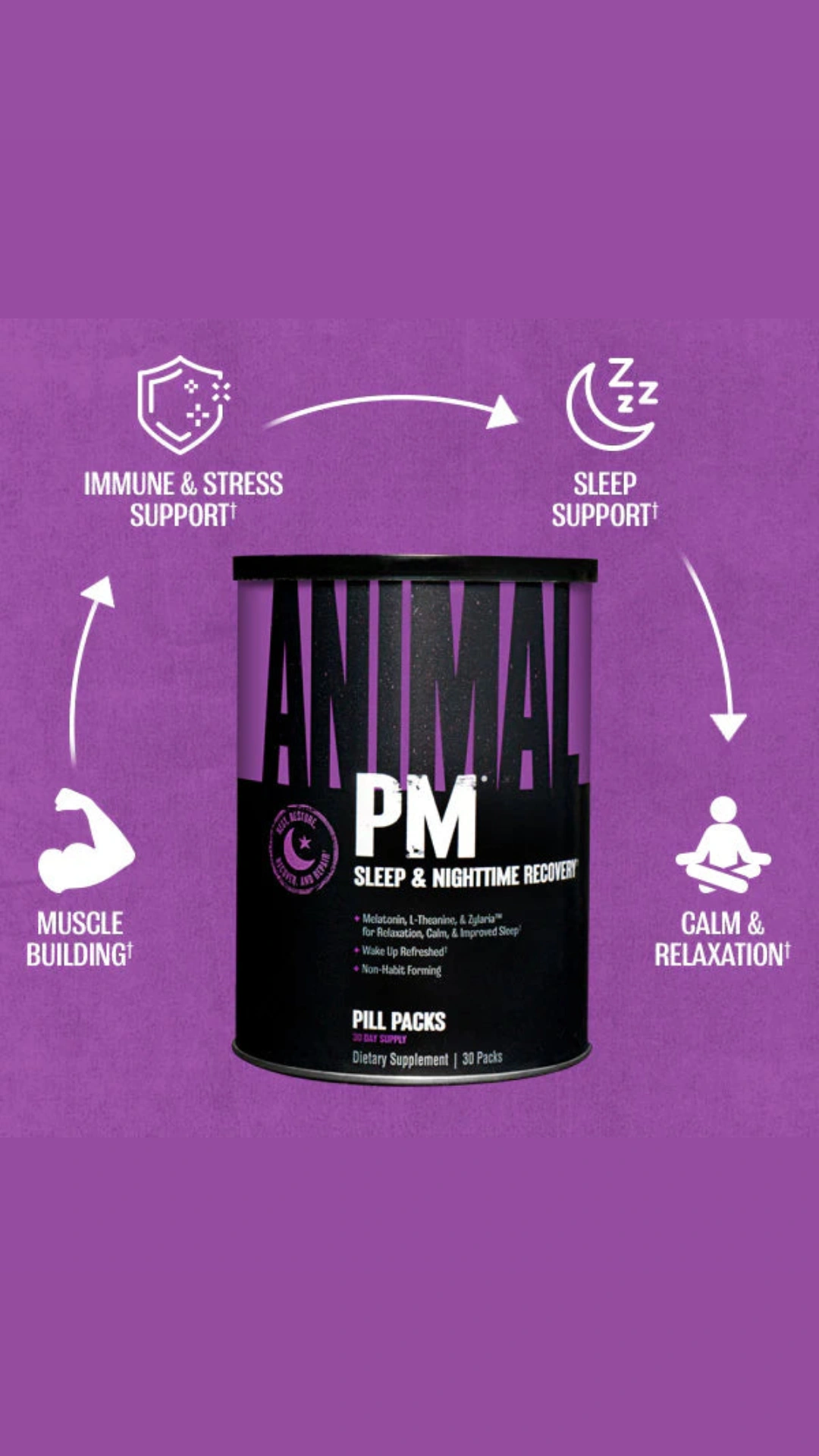 Animal PM de Universal Nutrition es un suplemento en cápsulas diseñado para mejorar los procesos de recuperación por la noche mientras duermes, creando así un ambiente más anabólico durante el sueño que te ayudará a recuperar y reparar el cuerpo después de una intensa sesión de entrenamiento.