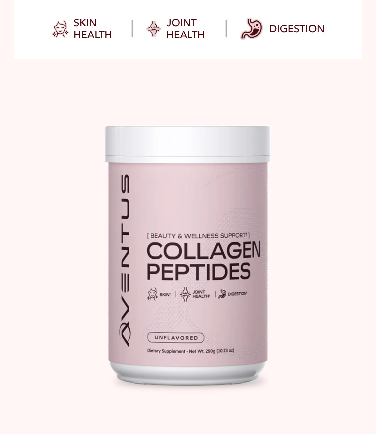 Alimente su fuerza interior y su luminosidad con los péptidos de colágeno de Aventus. Nuestra fórmula de primera calidad le proporciona a su cuerpo los componentes básicos esenciales para favorecer una digestión, unas articulaciones y una piel saludables.